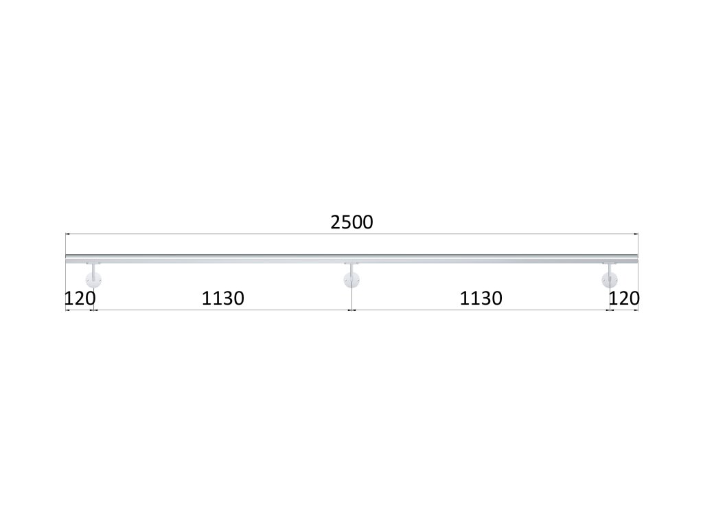 madlo 2500mm /leštená nerez /AISI304, set:3ks úchyt, madlo ø 42.4mm s ukončením