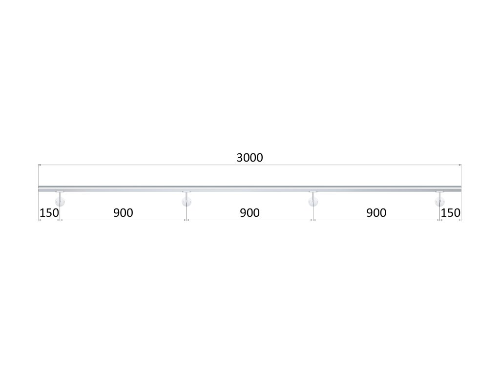 madlo 3000mm /leštená nerez /AISI304, set:4ks úchyt, madlo ø 42.4mm s ukončením