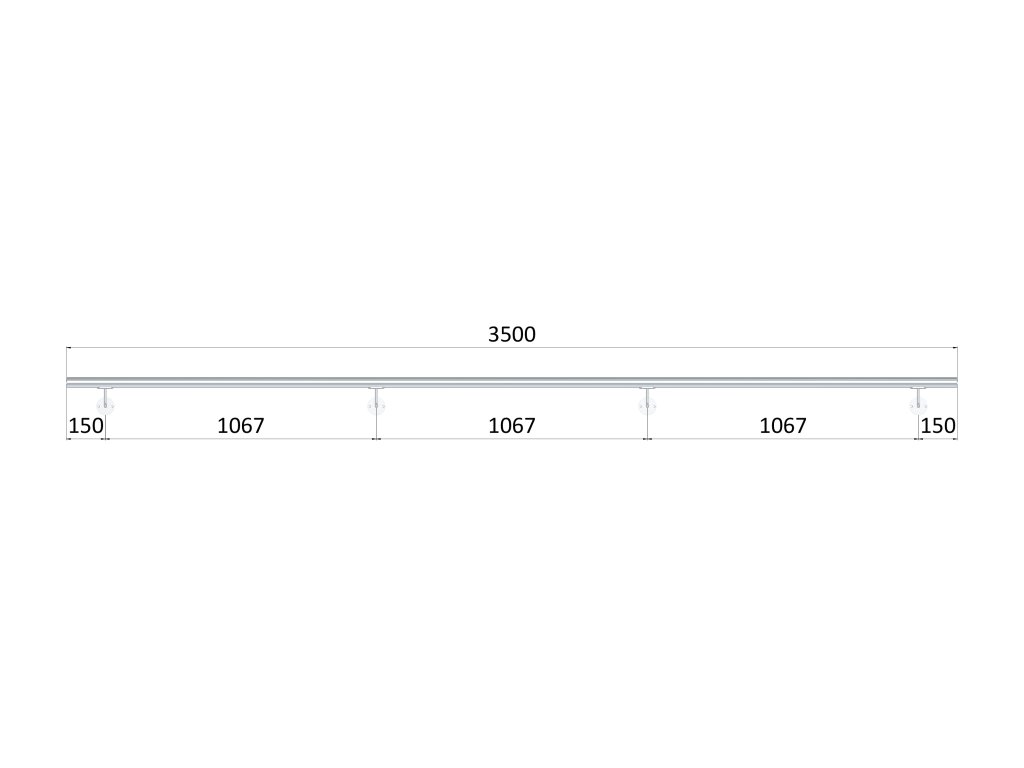 madlo 3500mm /leštená nerez /AISI304, set:4ks úchyt, madlo ø 42.4mm s ukončením