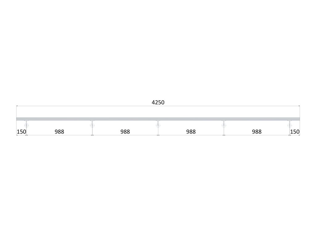 madlo 4250mm /leštená nerez /AISI304, set:5ks úchyt, madlo ø 42.4mm s ukončením