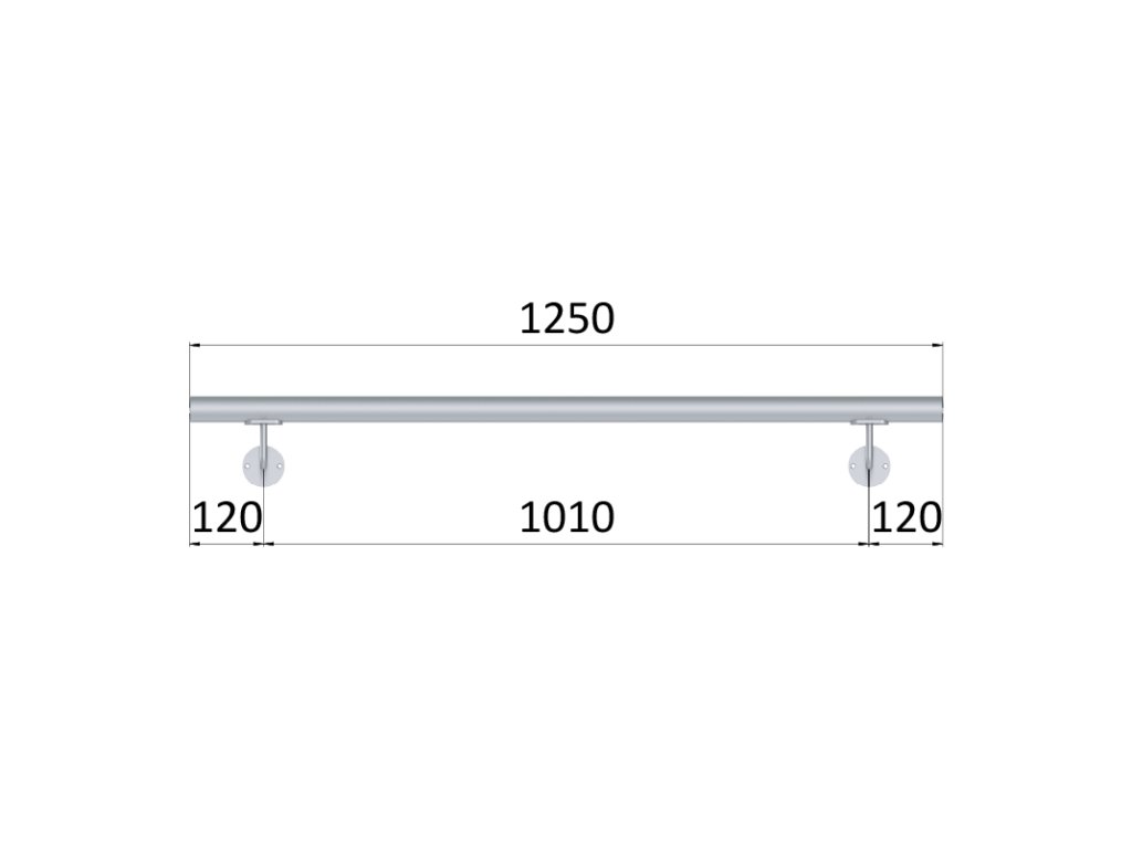 madlo 1250mm (set:2ks úchyt, madlo ø 42.4mm s ukončením), brúsená nerez K320 /AISI304