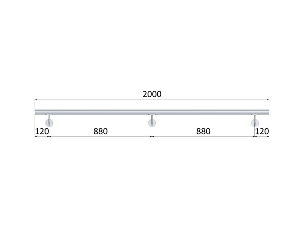 madlo 2000mm (set:3ks úchyt, madlo ø 42.4mm s ukončením), brúsená nerez K320 /AISI304