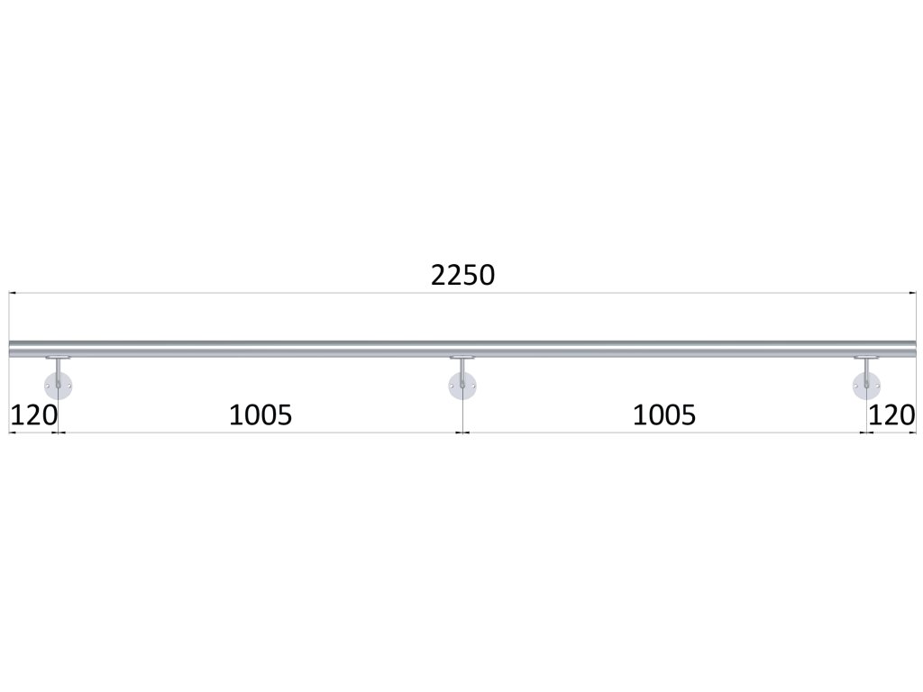 madlo 2250mm (set:3ks úchyt, madlo ø 42.4mm s ukončením), brúsená nerez K320 /AISI304