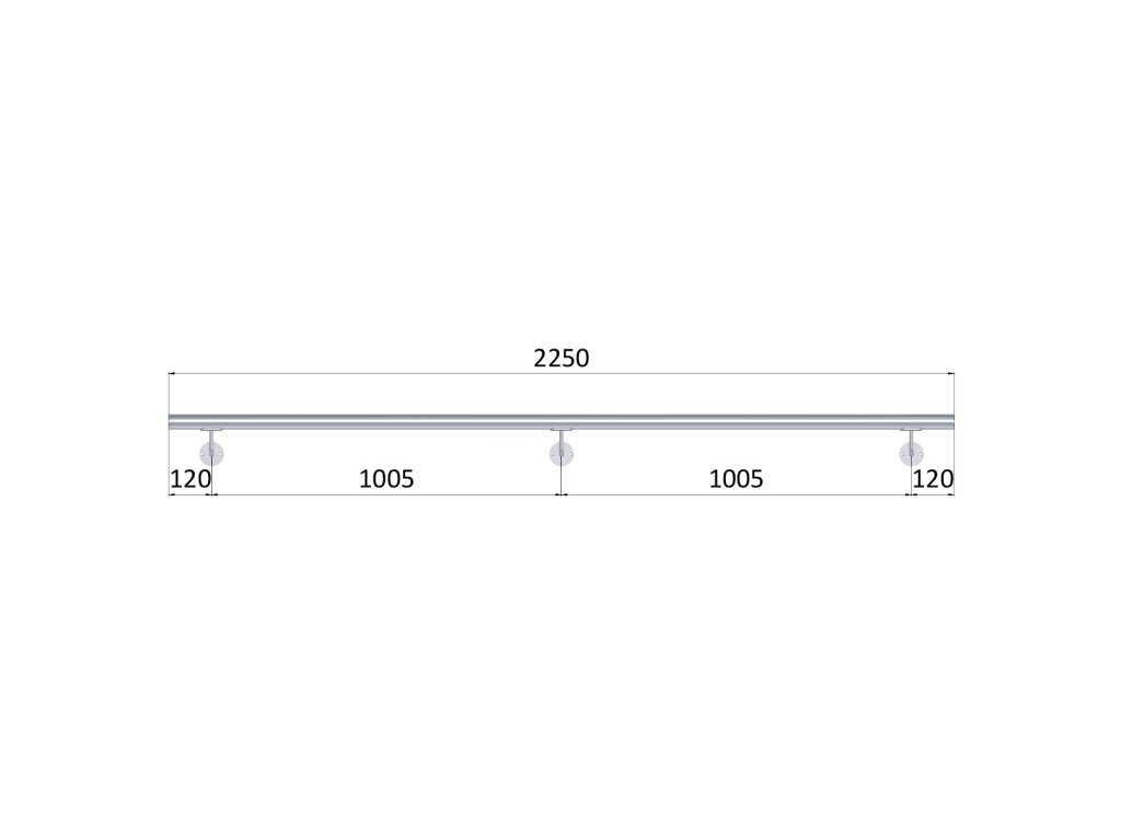 madlo 2250mm /brúsená nerez K320 /AISI316 set: 3ks úchyt, madlo ø 42.4mm s ukončením