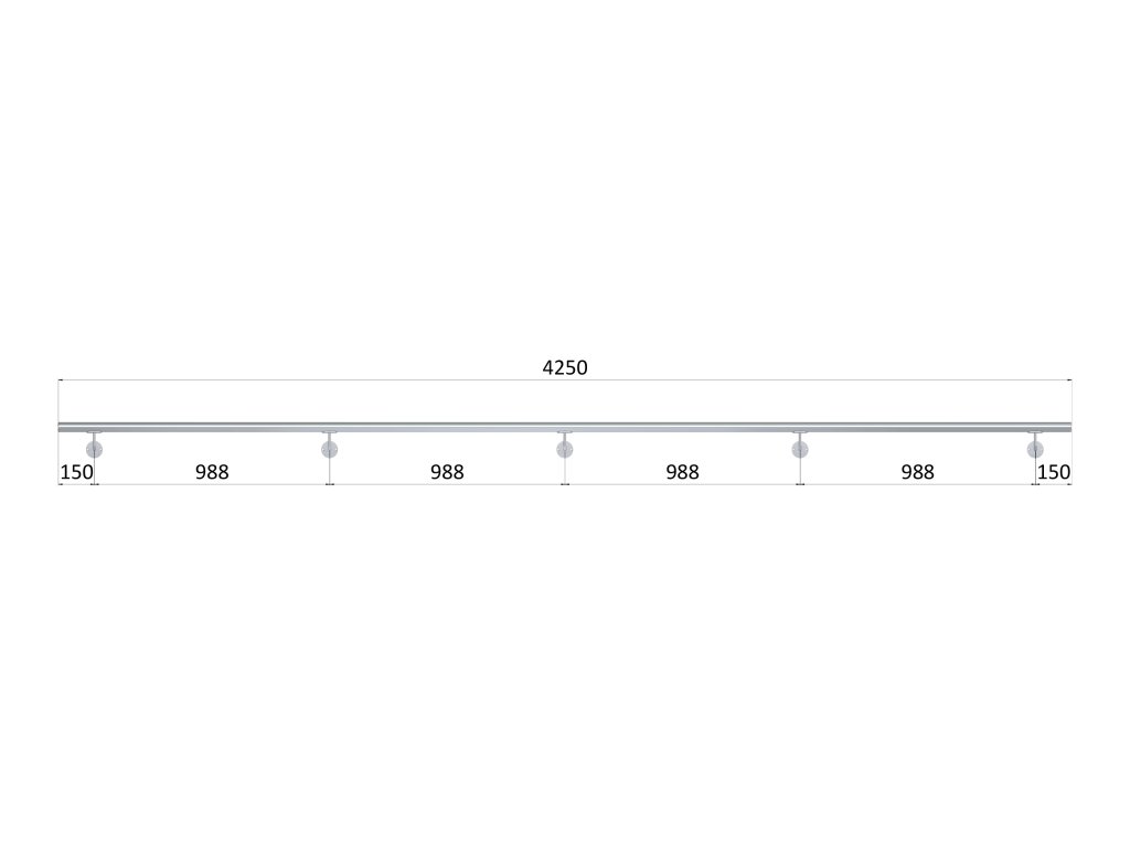 madlo 4250mm (set:5ks úchyt, madlo ø 42.4mm s ukončením), brúsená nerez K320 /AISI304