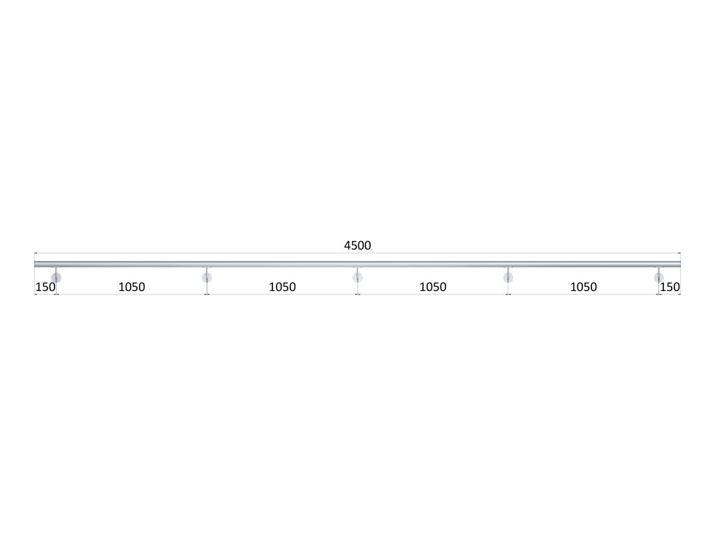 madlo 4500mm /brúsená nerez K320 /AISI316 set: 5ks úchyt, madlo ø 42.4mm s ukončením