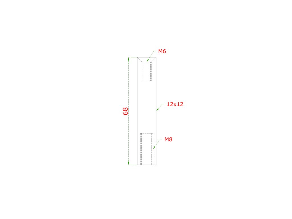 Čap 12 x 12 mm, L = 68 mm, závit M6/M8, brúsená AISI 304