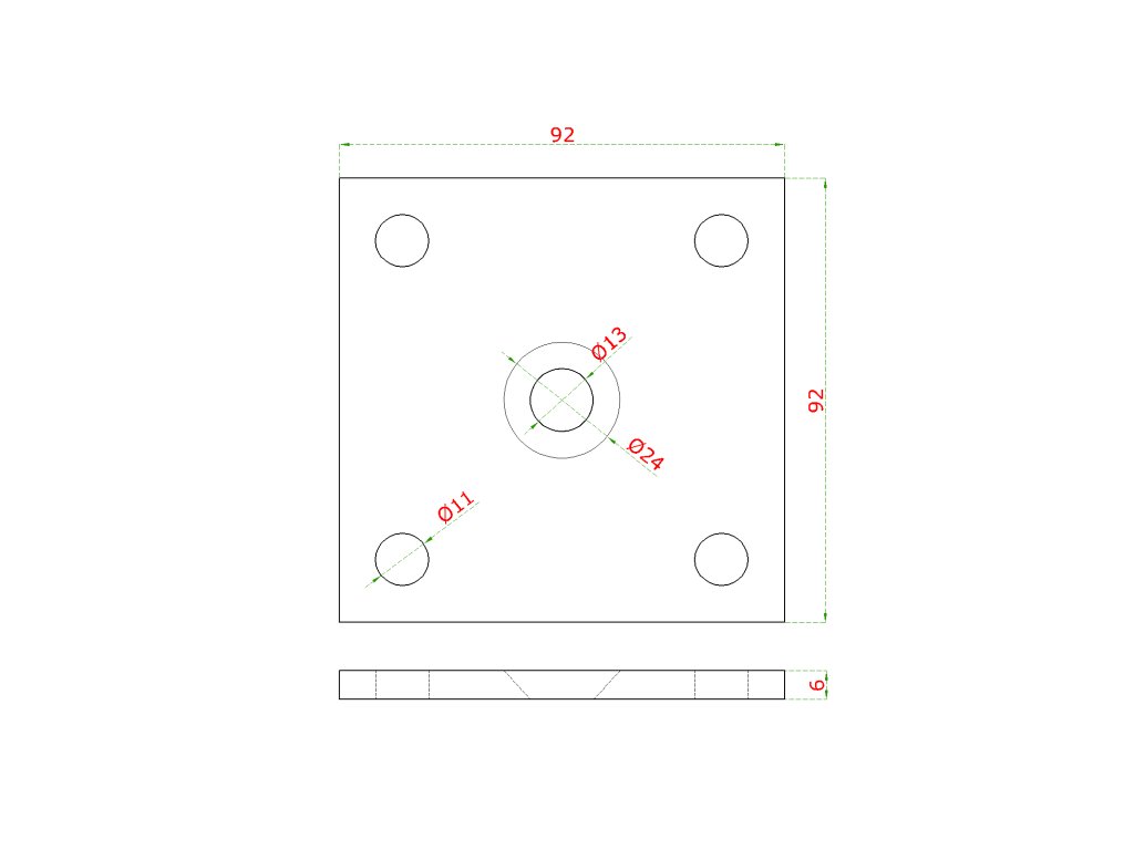 kotviaca platňa (92x92x6mm) na drevený stĺp 40x40mm, otvor ø 25mm, brúsená nerez K320 /AISI304