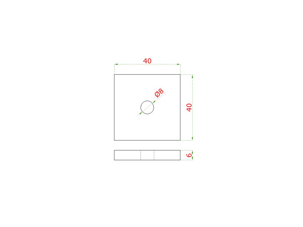 podložka štvorcová horná (40x40x6mm / diera ø 8mm), brúsená nerez K320 /AISI304