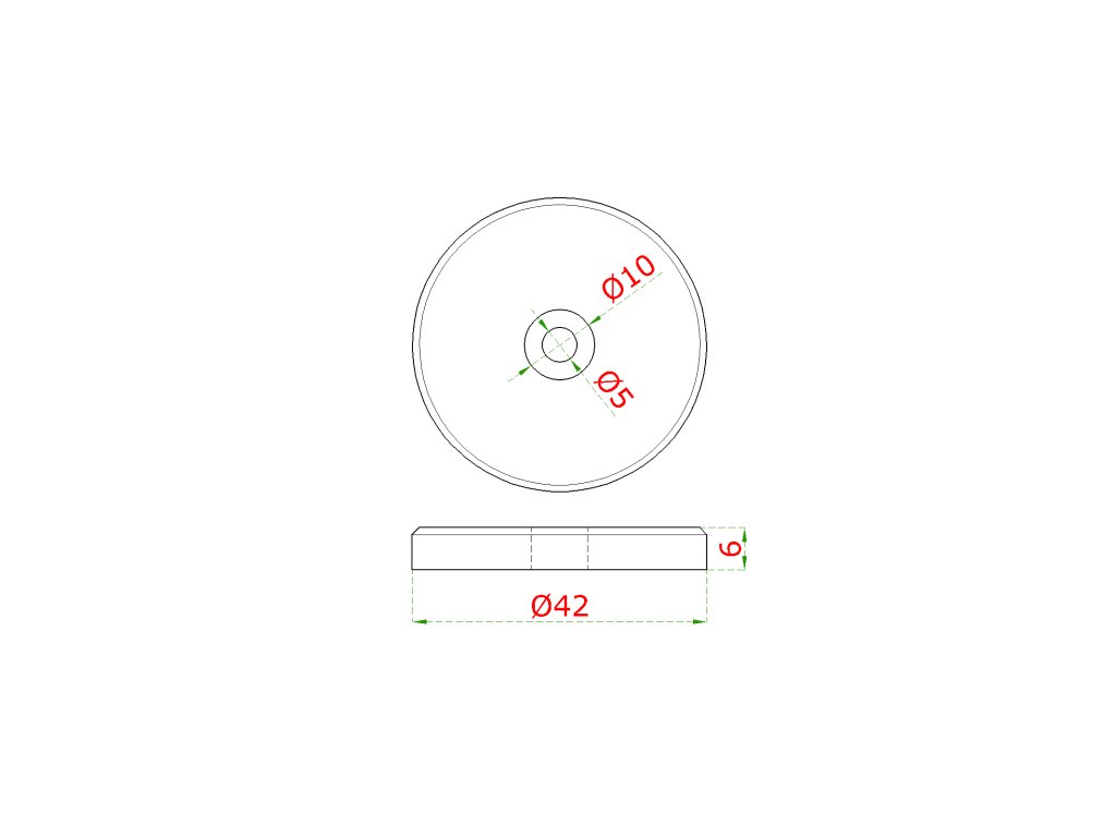 podložka spodná (ø 42x6mm, diera ø 10/5mm), brúsená nerez K320 /AISI304