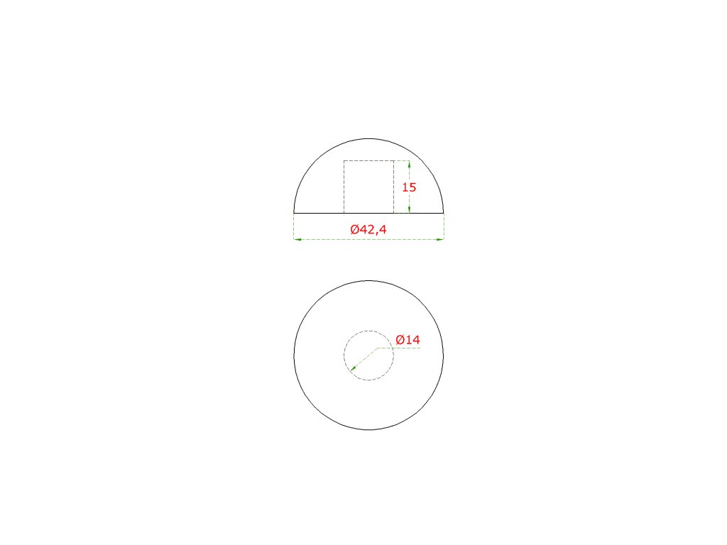 Ukončenie polGuľaté, na drevené madlo ø 42,4 mm, AISI 304