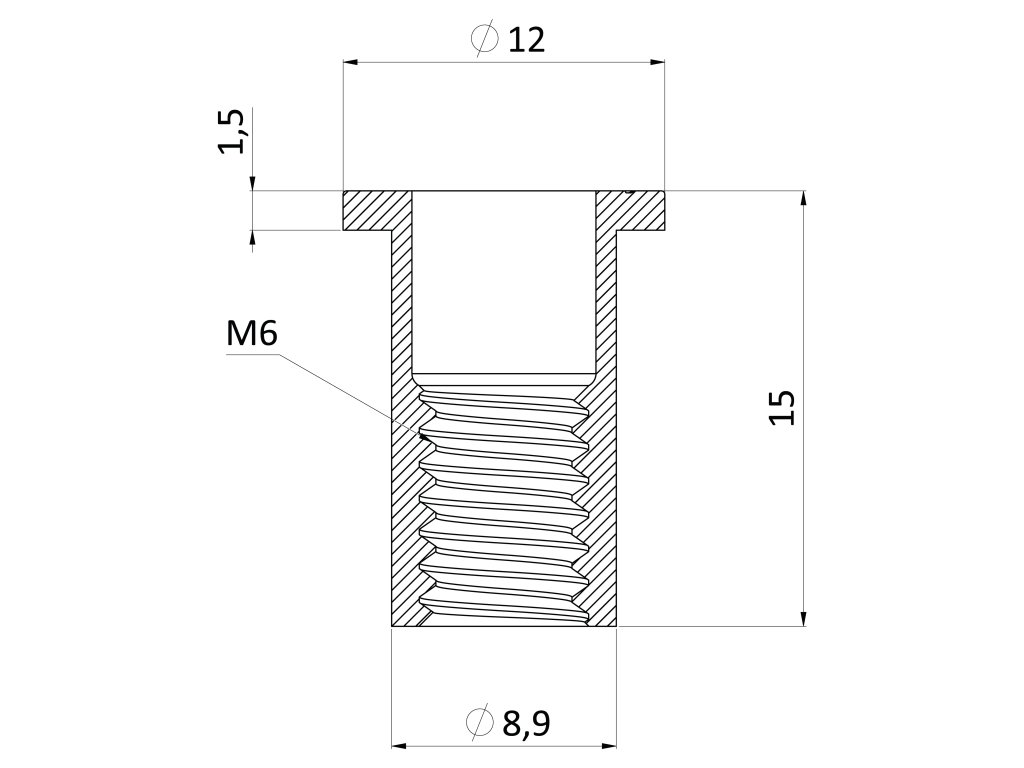 Nitovacia matica hliníková M6/0.5-2.5/ plochá hlava, hladký driek, VZ L = 15mm