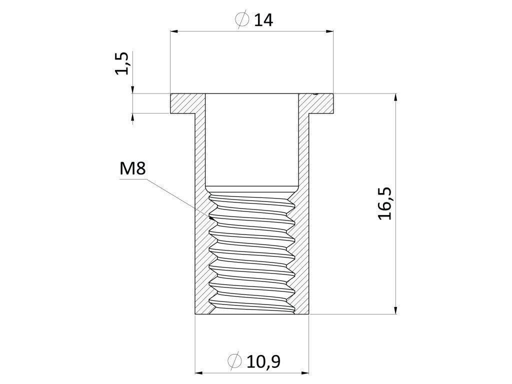 Nitovacia matica hliníková M8, plochá hlava, L = 16,5 mm