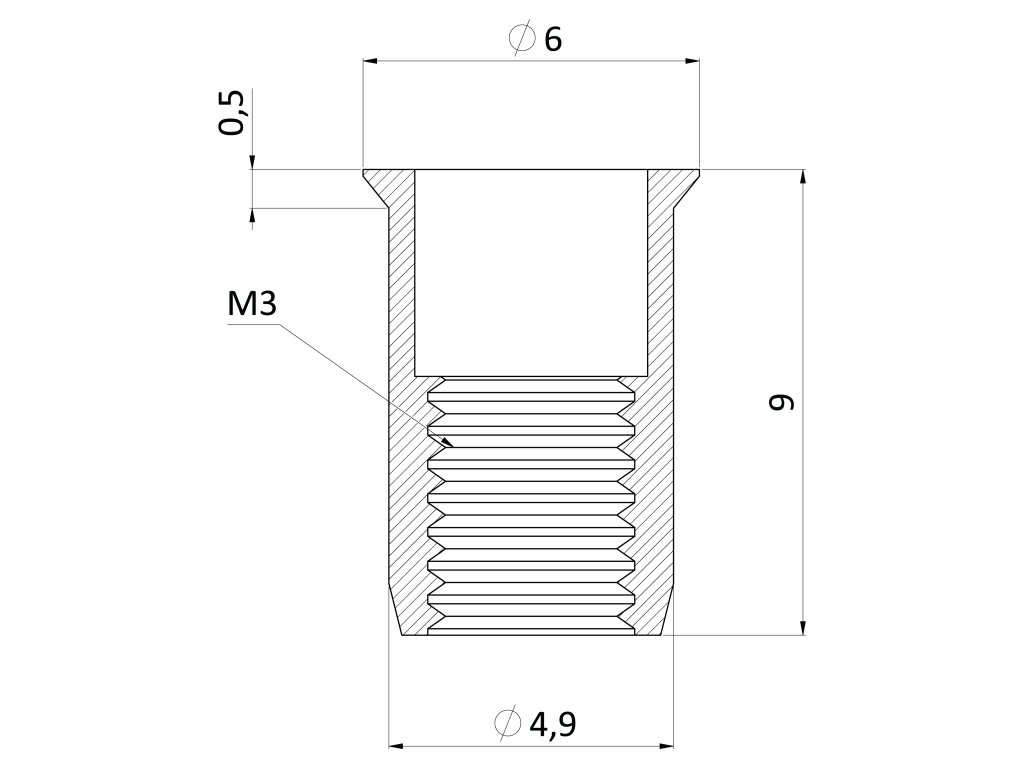 Nitovacia matica M3/0.3-1.5/ mikro hlava, rýhovaný driek, VZ L = 9mm