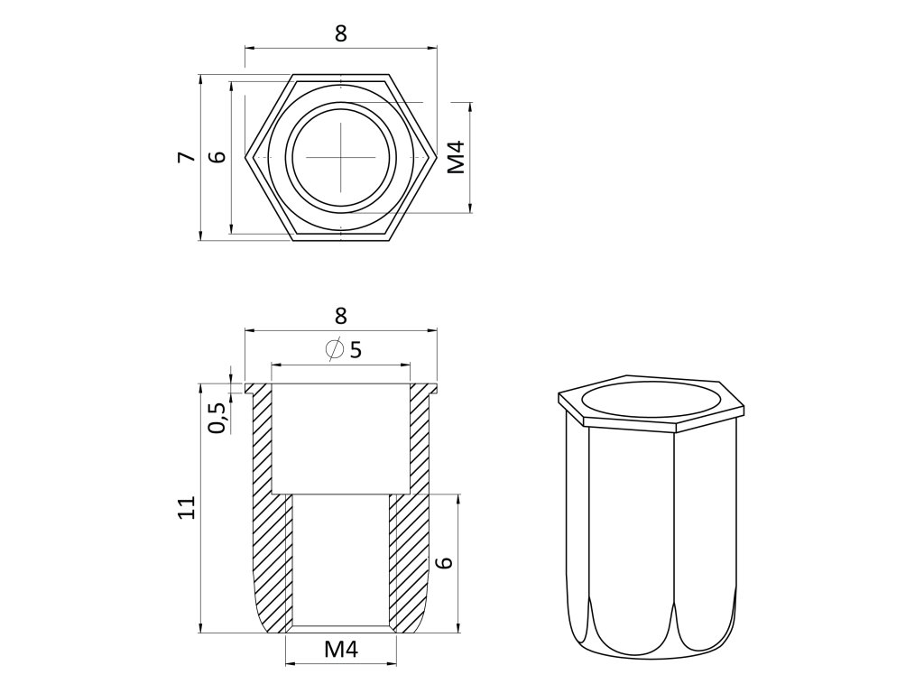 Nitovacia matica M4, mikro hlava, hex, L = 11 mm, nerez
