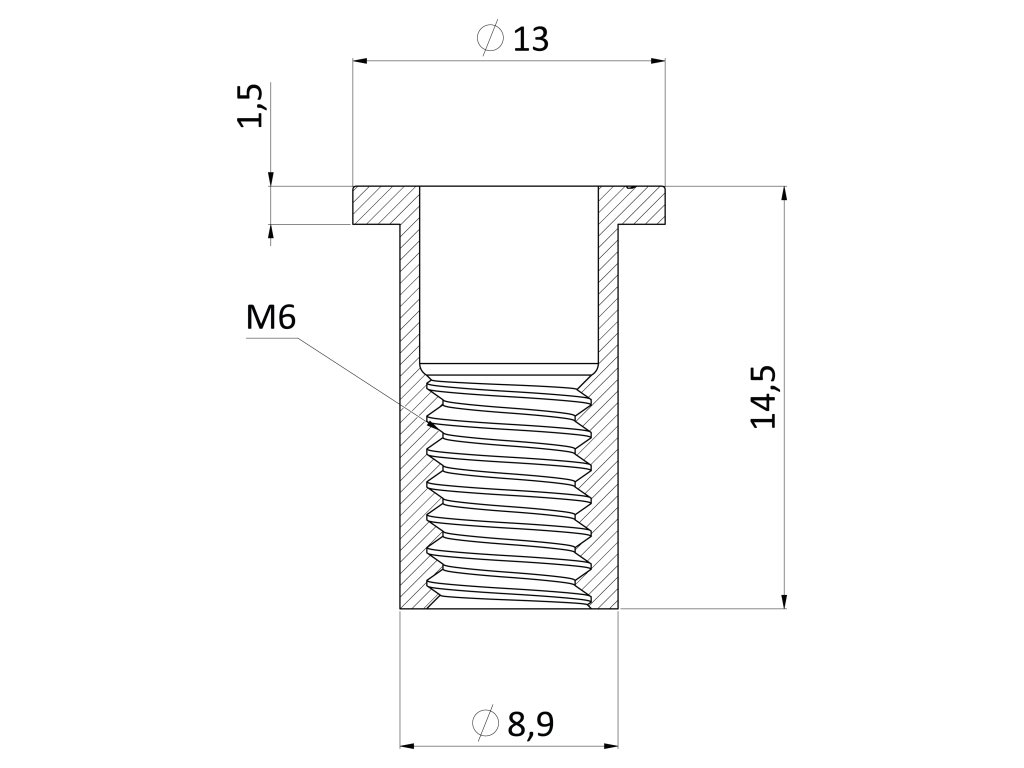 Nitovacia matica M6, plochá hlava, VZ, L = 15,5 mm