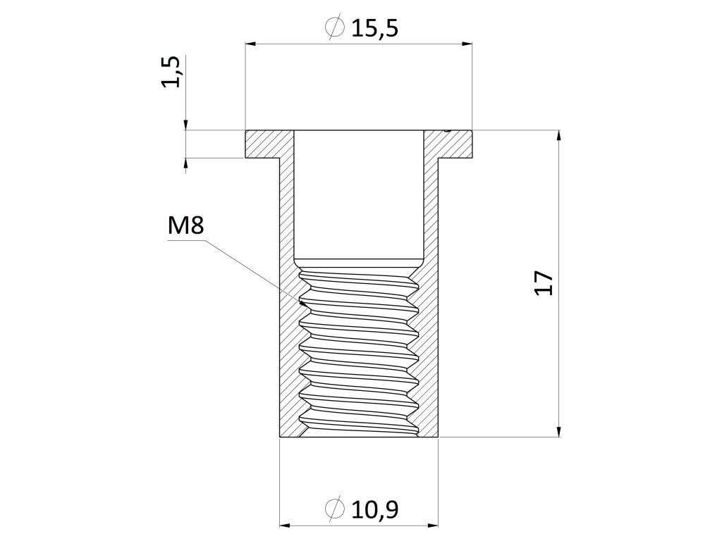 Nitovacia matica M8, plochá hlava, VZ, L = 18,5 mm