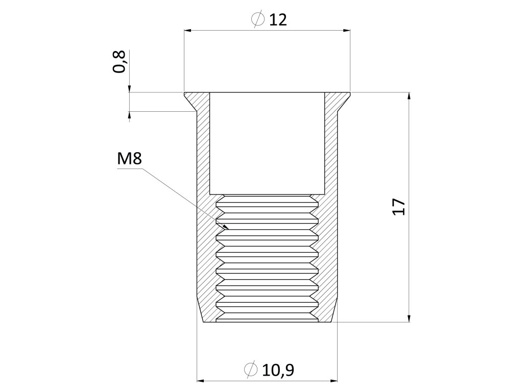 Nitovacia matica M8 x 16,5 mm, mikro hlava, rýhovaný driek