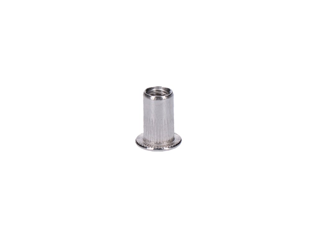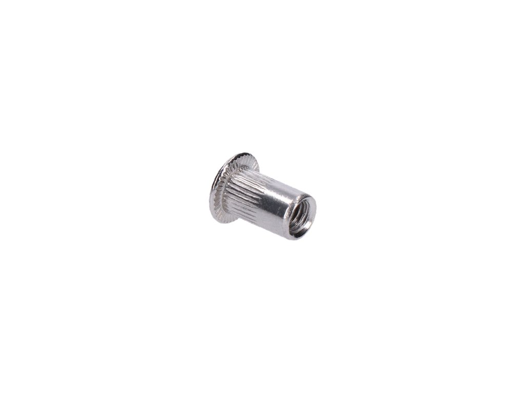AISI304 nitovacia matica M4, plochá, rýhovaný driek, L-8mm