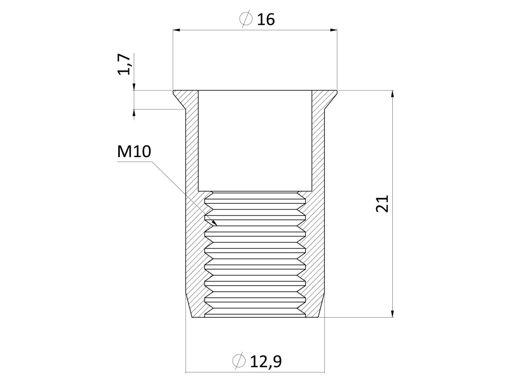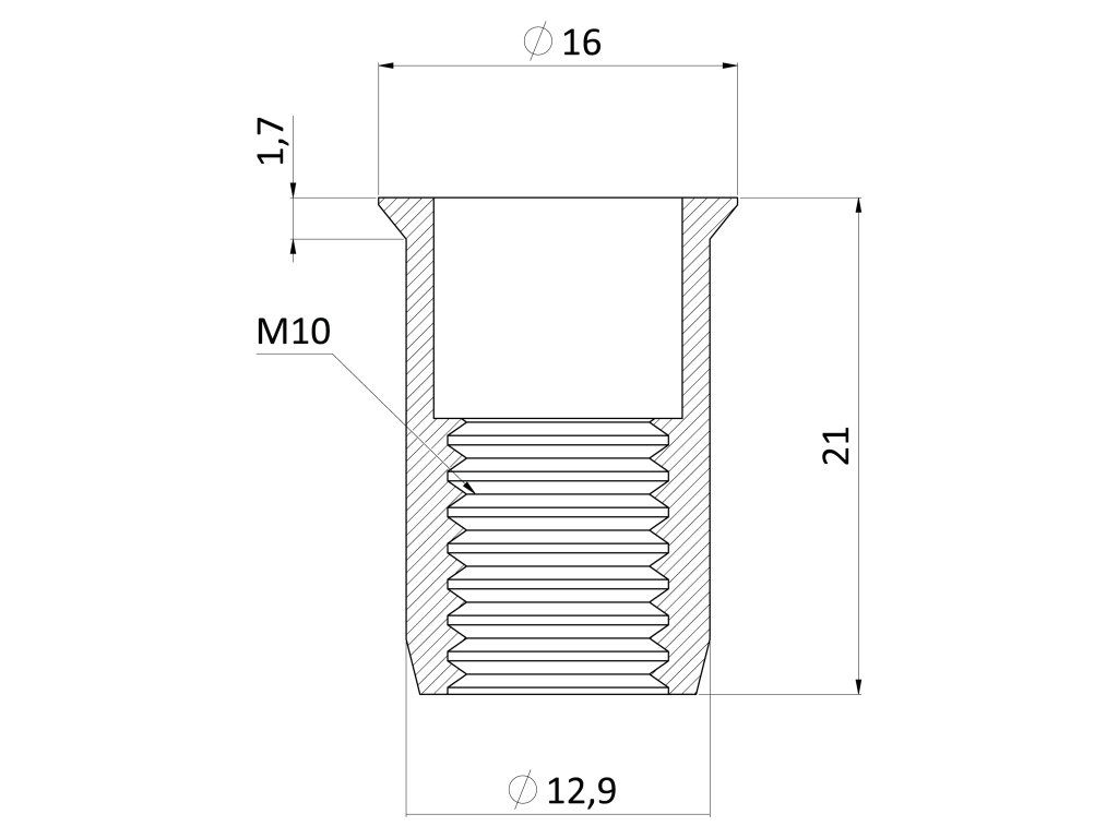 Nitovacia matica M10, zapustená, ryhovaný driek, AISI 304