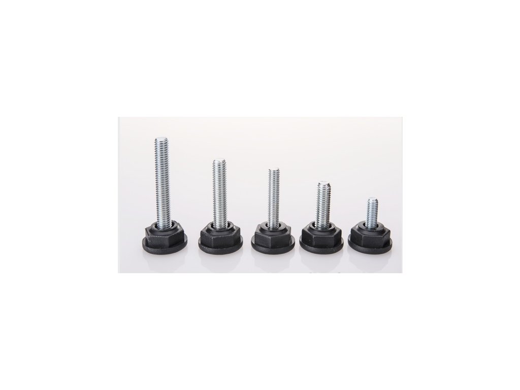 ø-30mm; M8x15mm; H-15mm, Bezkĺbová plastová nivelačná nožička; závitovo-nastavitelná.