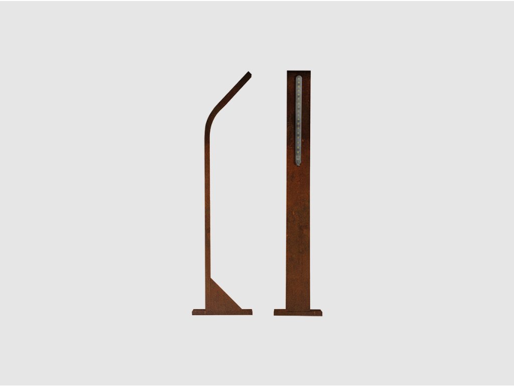 Je dostupné v prevedení corten, ktoré imituje prirodzenú hrdzu, čím dodáva priestoru elegantný industriálny vzhľad. Toto svietidlo je vhodné na osvetlenie chodníkov, terás, záhradných prvkov alebo fasád.