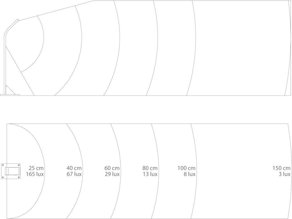 Osvetlenie Stik sa ponúka v troch verziách - UP s lúčmi smerujúcimi nahor a DOWN s lúčmi smerujúcimi nadol a vo verzii M s lúčmi smerujúcimi nadol a výškou 750 mm. K dispozícii sú tri farby RAL 9010, RAL 8019 a RAL 7016.