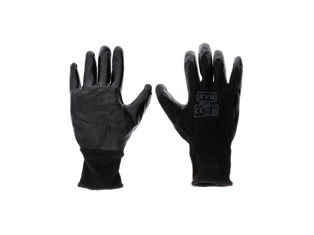 Ochranné rukavice určené na ochranu rúk pred mechanickými rizikami. Vyrobené sú z čierneho polyesterového úpletu a potiahnuté čiernym nitrilom s hladkým povrchom, čo zabezpečuje vynikajúcu priľnavosť. Rukavice majú vysokú odolnosť proti oderu, dosahujú úroveň 4 zo 4.