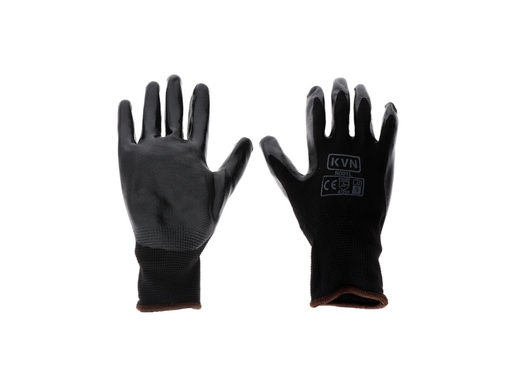 Ochranné rukavice určené na ochranu rúk pred mechanickými rizikami. Vyrobené sú z čierneho polyesterového úpletu a potiahnuté čiernym nitrilom s hladkým povrchom, čo zabezpečuje vynikajúcu priľnavosť. Rukavice majú vysokú odolnosť proti oderu, dosahujú úroveň 4 zo 4.