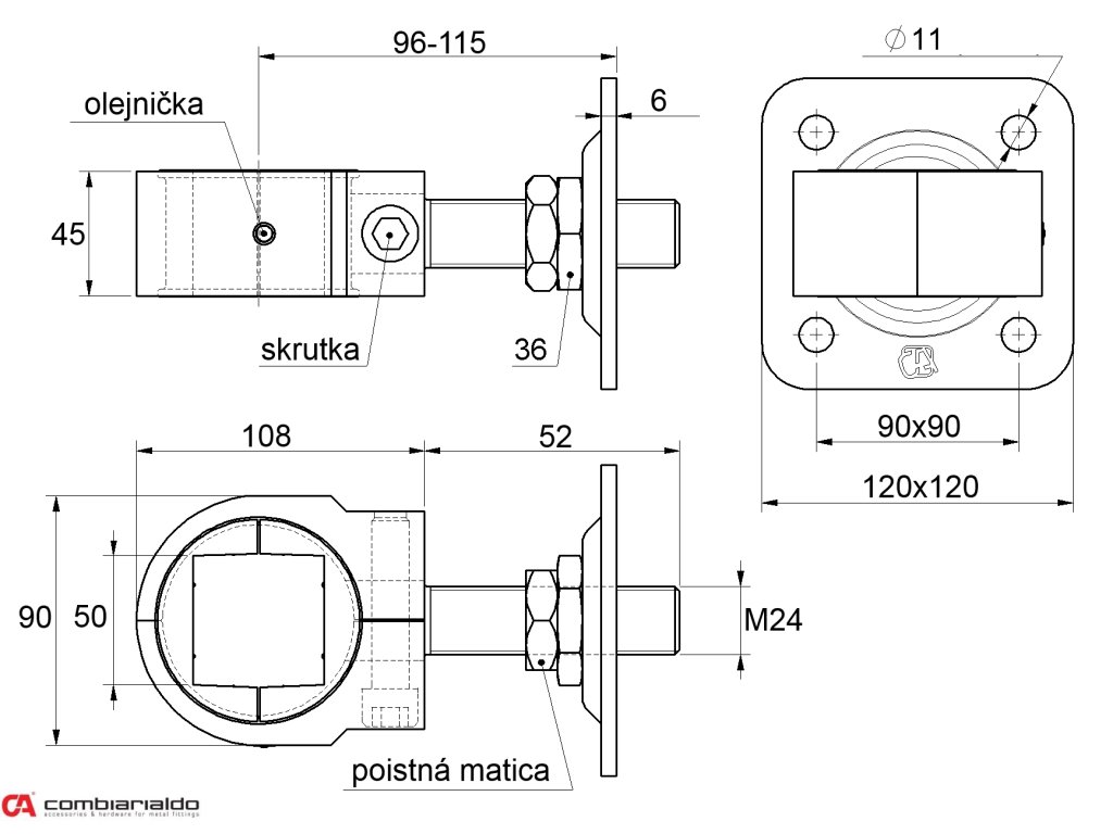 Záves nastaviteľný M22, pre 50 x 50 mm, platňa 120 x 120 mm