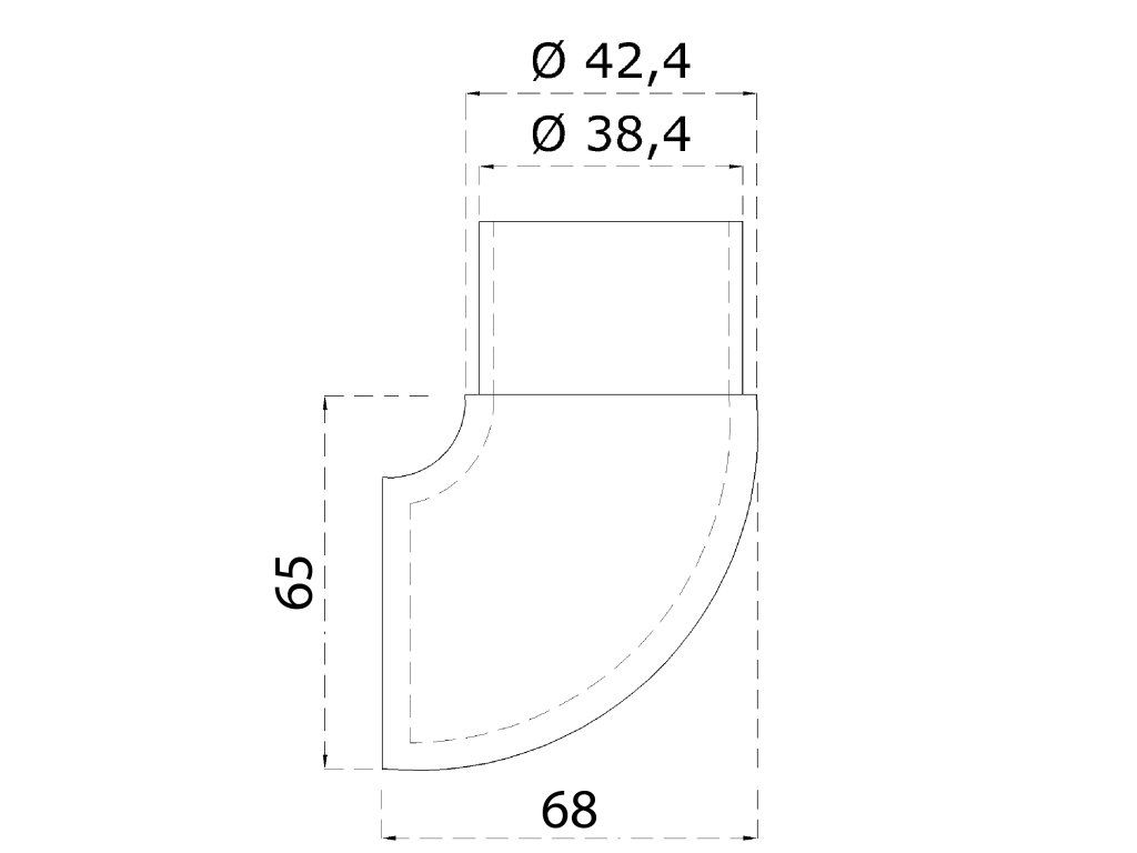ukončenie oblúkové 90° na trubku ø 42.4mm, brúsená nerez K320 /AISI304