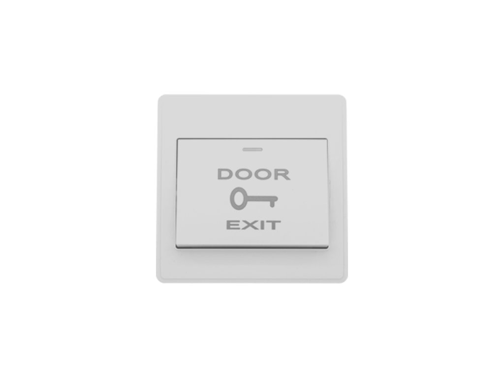 Elegantné nástenné tlačidlo určené pre ovládanie elektrických zámkov, elektromagnetických zámkov, turniketov alebo iných vstupných systémov. Označenie „DOOR EXIT“ s grafickým symbolom kľúča umožňuje používateľom intuitívne pochopiť jeho funkciu – otvorenie alebo odblokovanie dverí pri odchode.