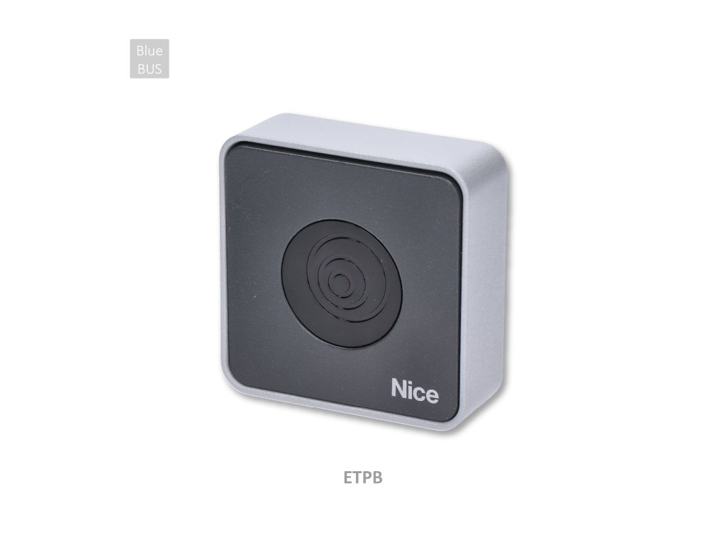 Osobe je pridelená karta (alebo kľúčenka), ktorá po priložení k čítačke kariet zadá pohonu pokyn. Karty sa ukladajú do pamäte čítačky, spôsobom, že karta si nič nepamätá, takže je možné s kartou obsluhovať ľubovoľné množstvo automatizácii. Čítačka NICE ETPB komunikuje s pohonom pomocou systému BlueBUS, kde čítačka je pripojená do riadiacej jednotky pomocou iba dvojžilového káblu u ktorého ani nie je potreba dbať na polaritu.