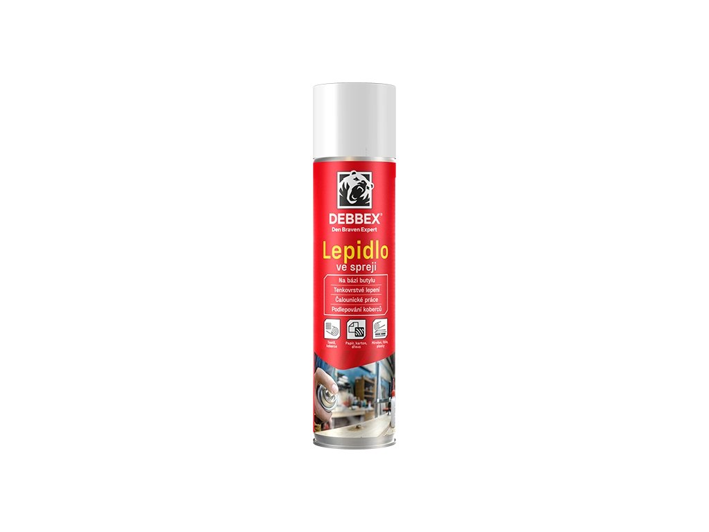 Použitie - Skvelá priľnavosť na rad podkladov, ako sú: PP, PE, pena, polyester, kov, drevo, vláknité dosky, lepenka, betón, sklo, textil, koža, plsť, bavlna atp. - Na lepenie 3D pásikov. - Použiteľné aj ako primer. - Vďaka nastaviteľnej tryske je možné sprejovať „plocho“ alebo „presne.“ -Ideálne pre lepenie v čalúníctve a pri dekoratívnych prácach. Lepidlo v spreji je možné tiež používať na podlepovanie kobercov a pri pokladaní textilných krytín. -Pred realizáciou podláh je možné dolepovať tesniace pásy k murivu, pred vyliatím samonivelačných hmôt.