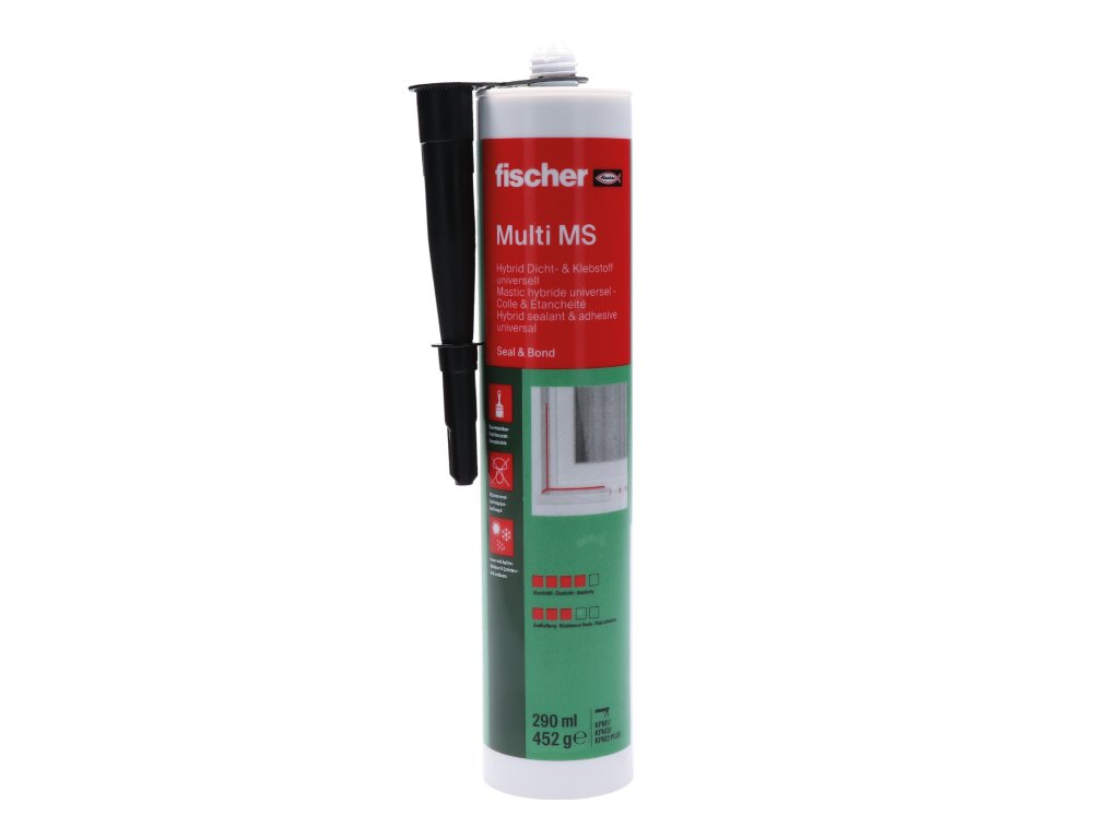 fischer všestranné lepidlo Multi MS je založené na hybridnej báze a je univerzálne vhodné na prácu v interiéri a exteriéri na lepenie a tesneniu styčných a dilatačných škár. Multi MS je aj po vytvrdnutí trvale pružné, preto sa používa napr. k tesneniu škár okolo vibrujúcich konštrukcií, tesneniu dilatačných škár, kontaktných odvetrávaných konštrukcií, na lepenie nástenných skriniek, schodišťových stupníc, okenných parapetov, líniových spojov rôznych automobilových častí, pri realizácií kovových konštrukcií a na mnohých iných miestach stavebného priemyslu a v strojárenstve. Lepené časti sa nemusia spájať mechanicky vďaka vysokej počiatočnej priľnavosti 110 kg/m². Trvalá pružnosť lepidla absorbuje napätie od rôznych tepelných rozťažností. Výnimočne dobre lepí vlhké povrchy.