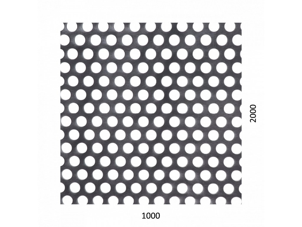 dierovaný plech kruhový presadený Fe, otvor: ø 10mm, rozteč: 15mm, (2000x1000x1mm)