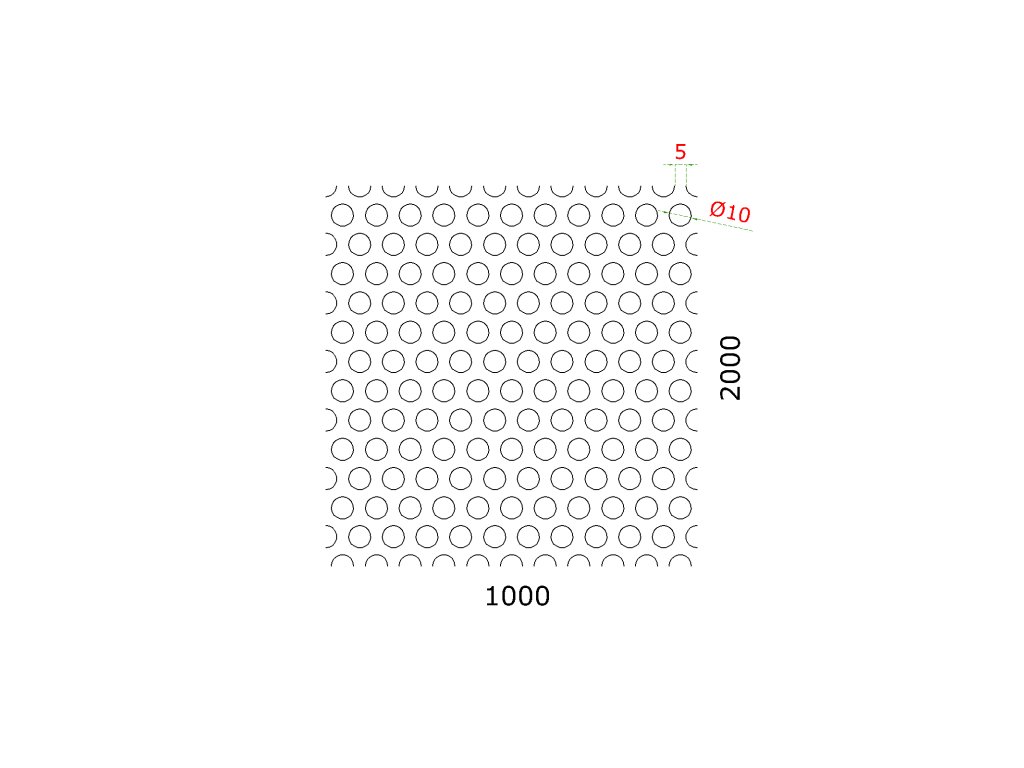 dierovaný plech kruhový presadený Fe, otvor: ø 10mm, rozteč: 15mm, (2000x1000x1mm)