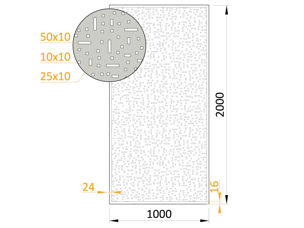 Dierovaný plech Zn 1000 x 2000 x 1,5 mm, štvorcové otvory