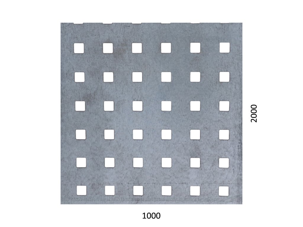 Dierovaný plech Zn t = 1,5 mm, otvor 10 x 10 mm rozteč 20 mm