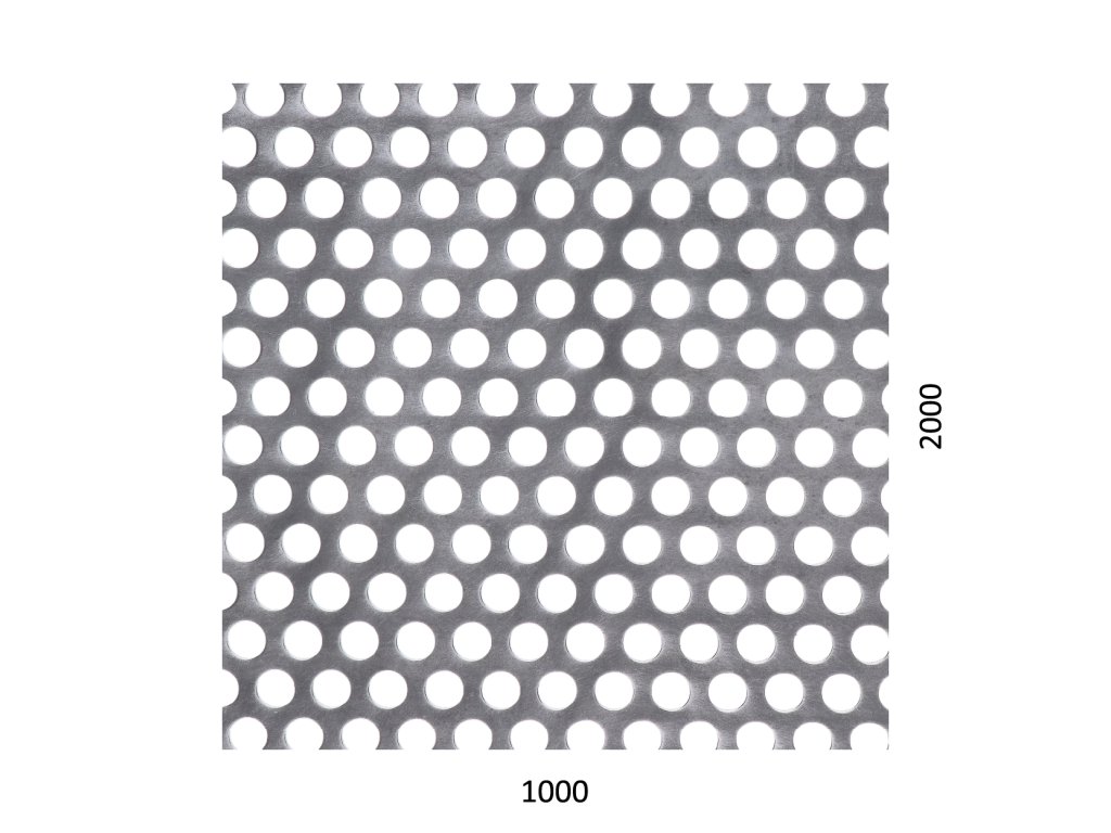 dierovaný plech kruhový presadený Zn, otvor: ø 10mm, rozteč: 15mm, (2000x1000x1mm)