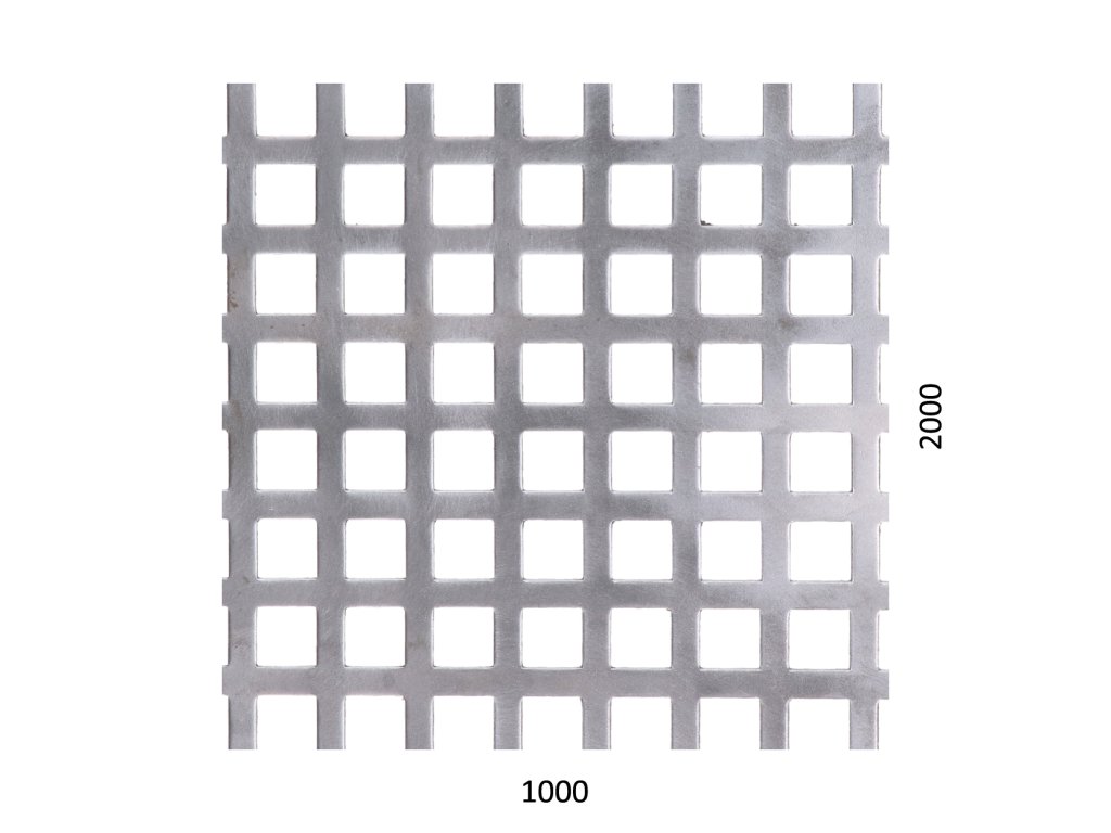 Dierovaný plech Zn t = 1 mm, otvor 10 x 10 mm, rozteč 14 mm