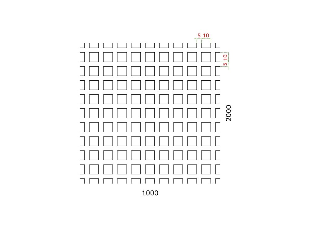 Dierovaný plech štvorcový radový Zn, otvor: 10x10mm, rozteč: 15mm, (1000x2000x1mm)