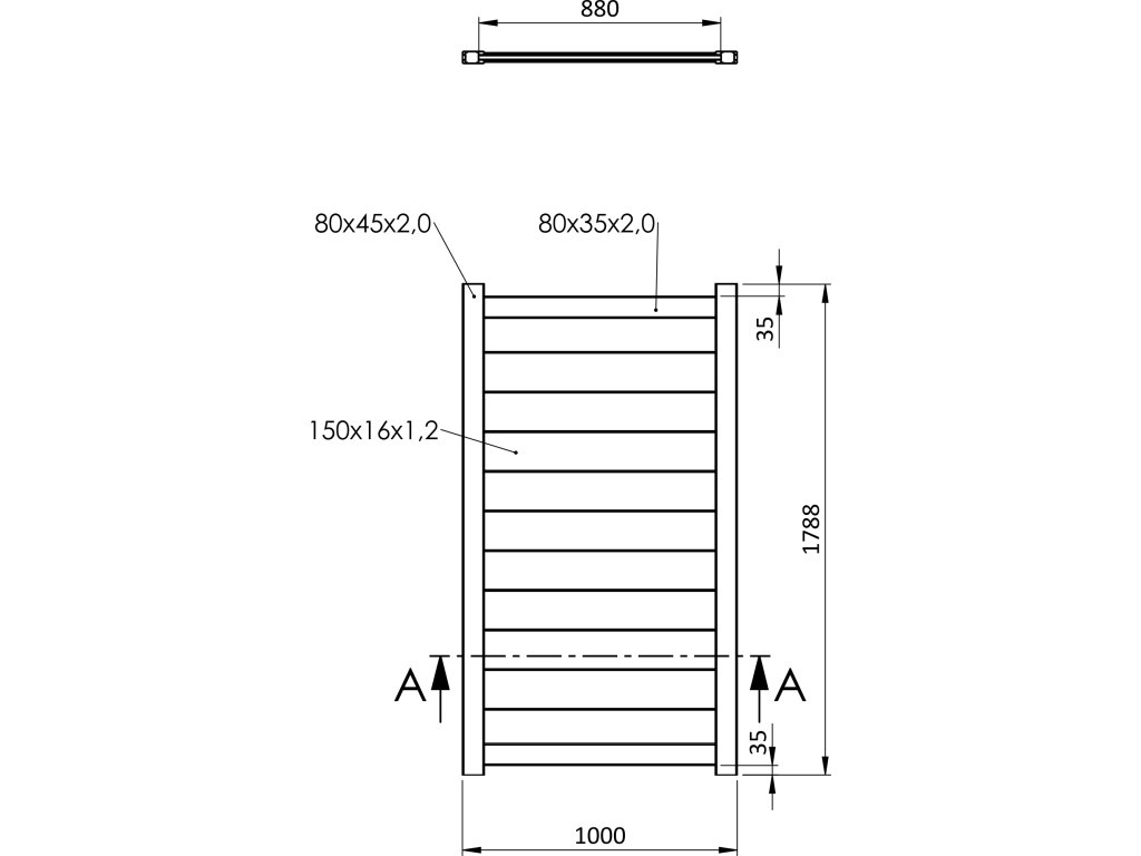 - celkový rozmer bránky: 1000 x 1788 mm