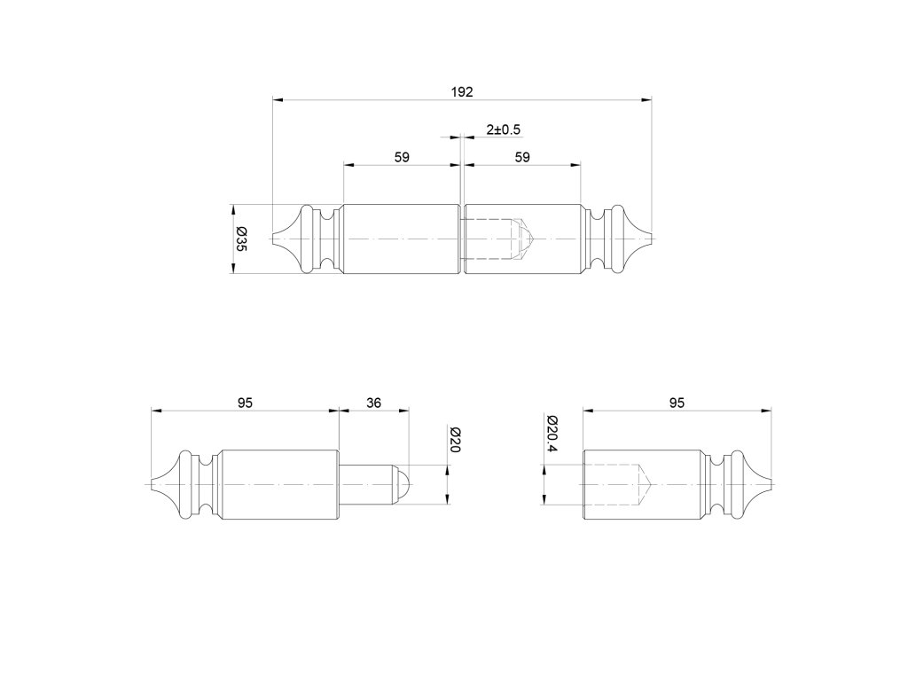 Záves s guličkou ø 35 x 190 mm, ozdobný, bez úpravy