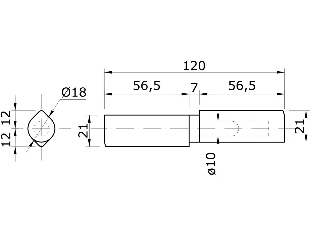 Pánt dvojdielny 120 x 18 mm s ložiskom, pozinkovaný tŕň