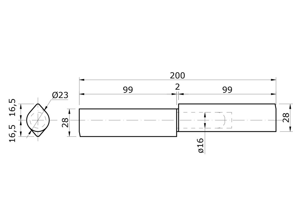 Pánt dvojdielny 200 x 23 mm s podložkou, pozinkovaný tŕň