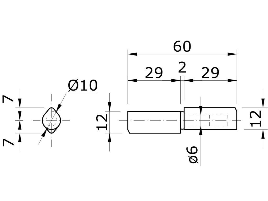 pánt dvojdielny 60x10mm, pozinkovaný tŕň