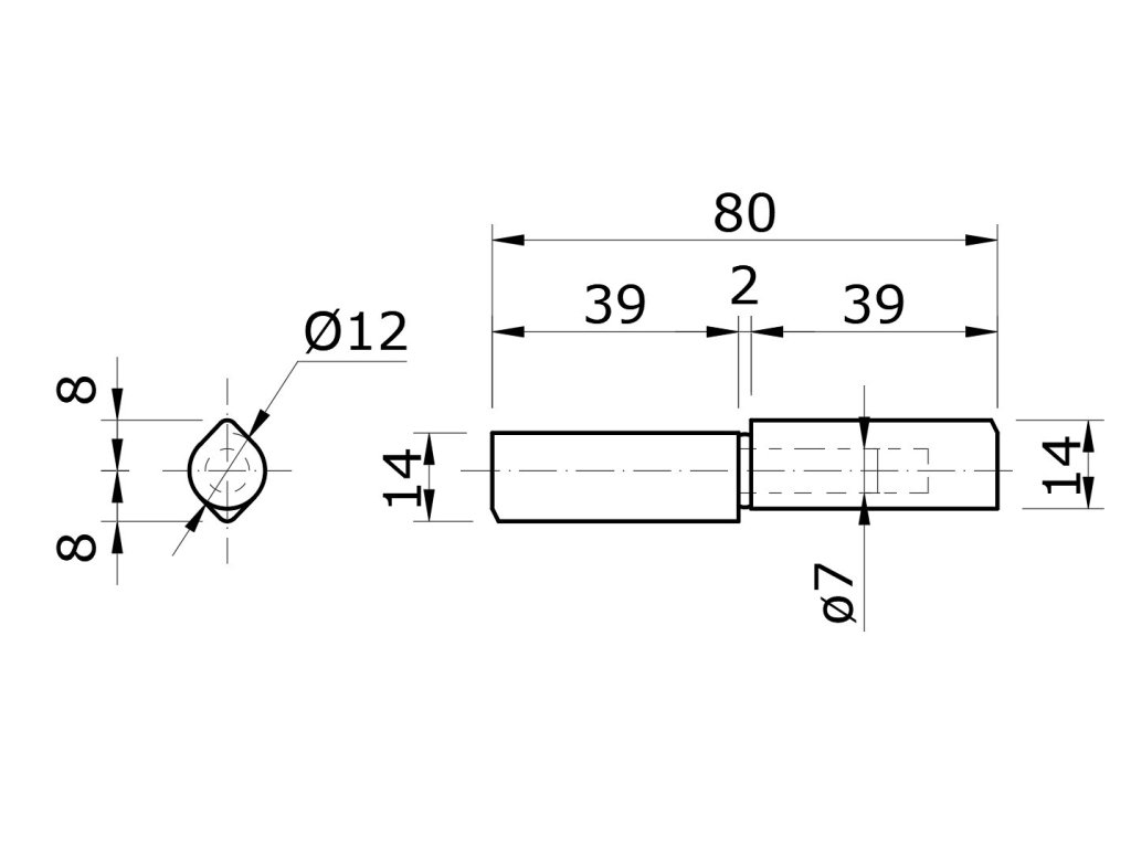 pánt dvojdielny 80x12mm, pozinkovaný tŕň