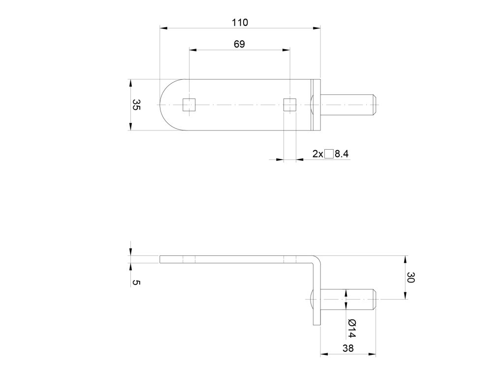 Kovanie 150 x 35 x 4 mm, ø 14 mm, povrch čierny lak
