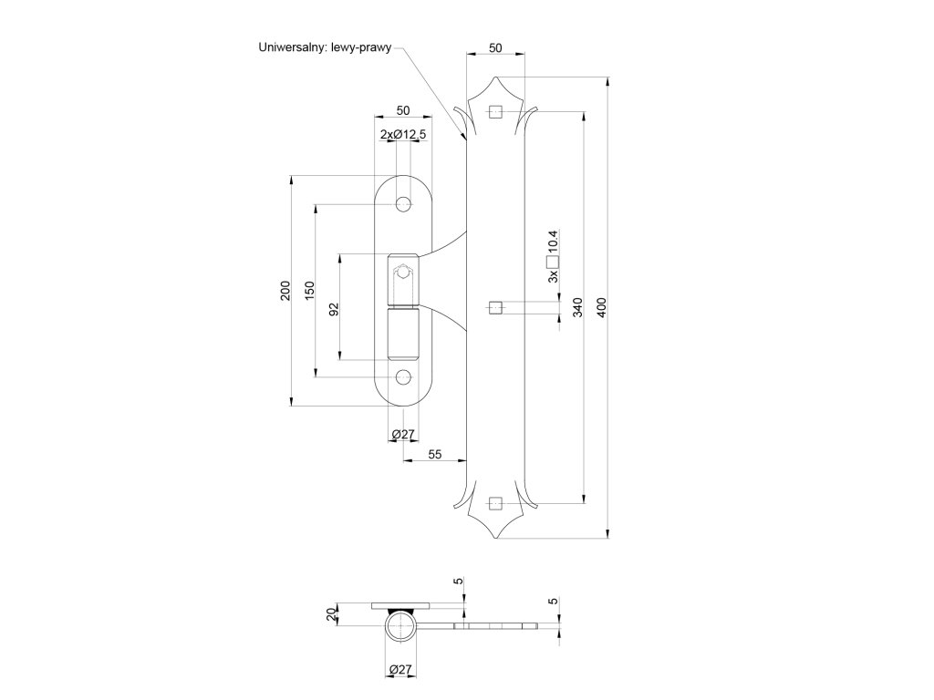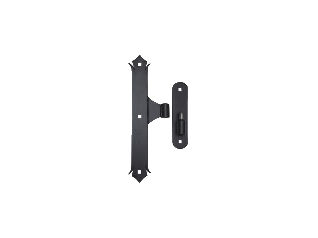 Zdobený pánt 400 x 50 x 5 mm, pre čap ø 27 mm, čierny lak
